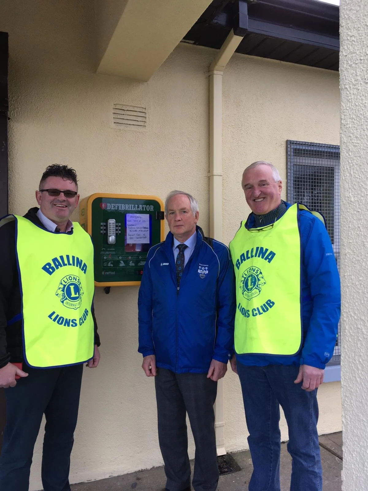Ballina Lions Club recently purchased and fitted an outdoor heated storage box for the Defibrillator in Ballina Town Soccer Clubhouse.